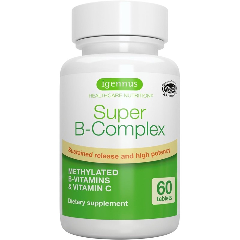 Super B-Complex ??Methylated Sustained Release Clean Label B Complex with Methylfolate, Boosted B12 Methylcobalamin, Vegan, Lab Verified, 60 Small Tablets, by Igennus
